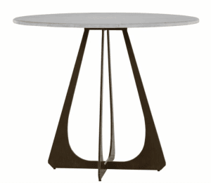 The Drayton Bistro Table elegantly combines modern design with functional art. Its sleek white marble top provides a luxurious surface, while the sculptural brushed copper finished iron base adds a touch of contemporary sophistication. Perfect for intimate dining or as a stylish foyer piece, this table’s unique silhouette makes it a standout addition to any space. For dining purposes, the Drayton Bistro Table can comfortably seat up to four people.
