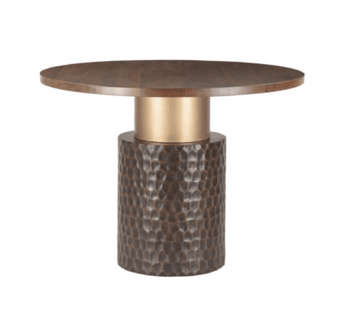 • Expertly crafted from high-quality Indian hardwood and solid iron components, the Maxton II flaunts a natural, medium brown polish on the wooden top which highlights the grain and character of the wood. This is complemented by the matte-black polish on the iron pedestal, giving the table a complete industrial look.
